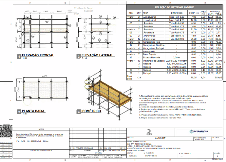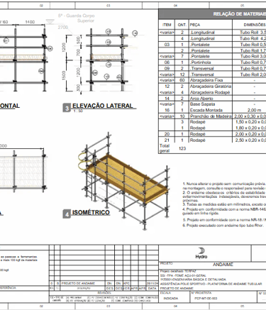 Projetos em CAD, com memória de cálculos, garantindo maior segurança aos executantes nos trabalhos em altura.